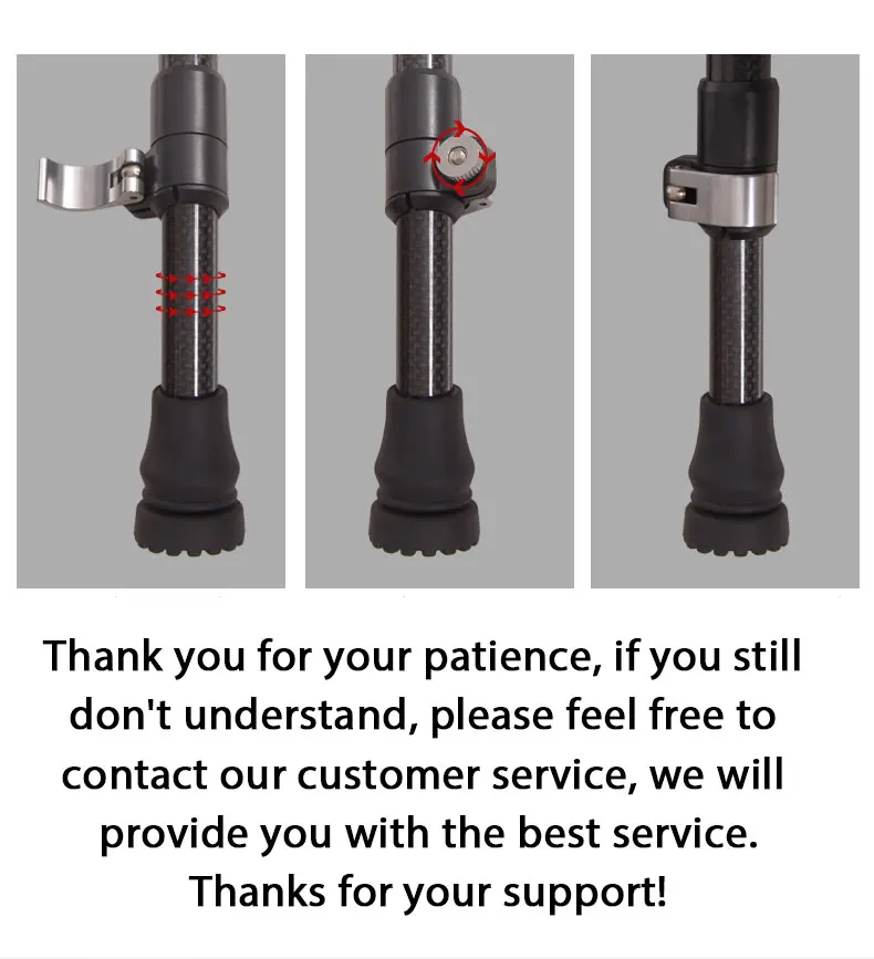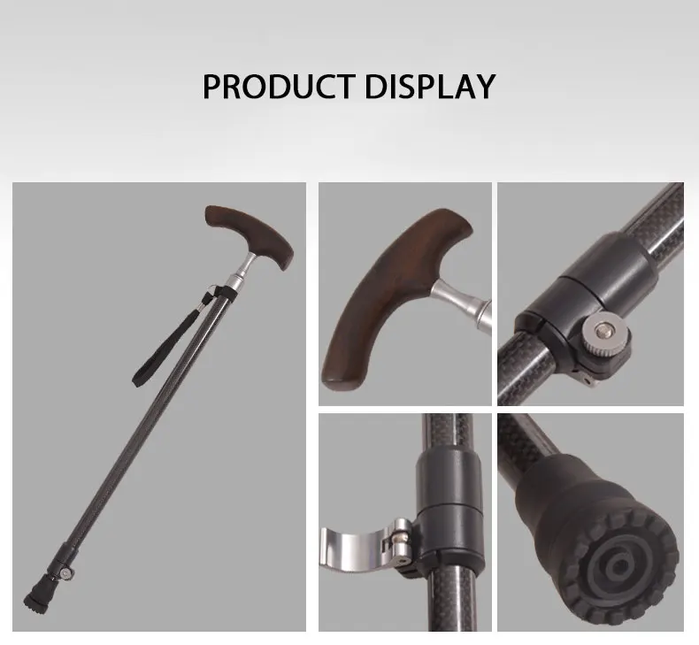Plegable de 7,4 secciones, telescópico de cinco velocidades, fácil de llevar; diseño de pulsera, no es fácil de desarmar, protege eficazmente a los ancianos para un uso seguro.