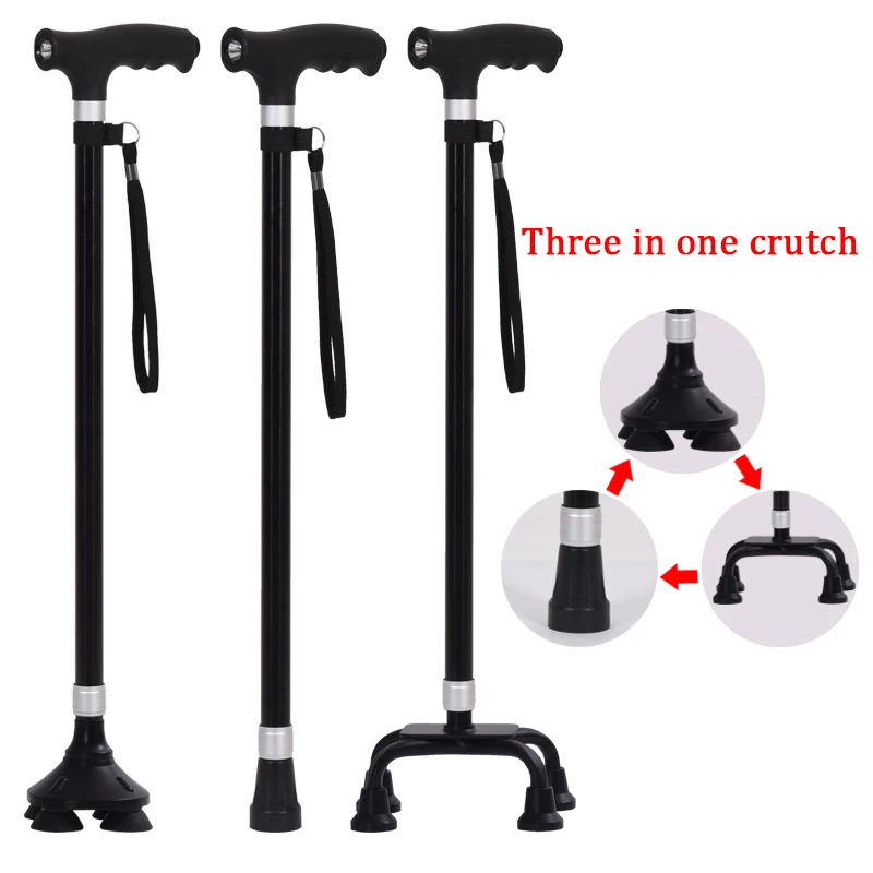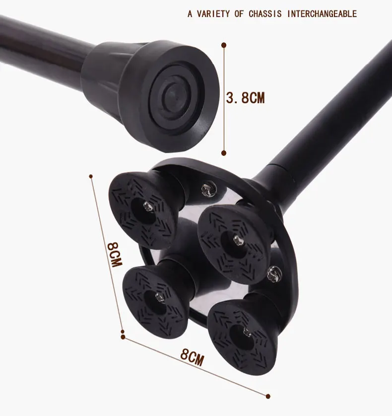 Un bastón con 3 bases diferentes, puede cambiar la base apropiada según la situación real.