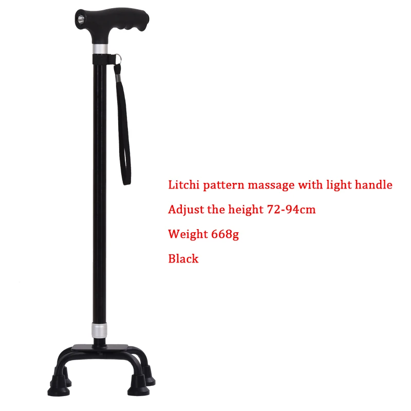 Una muleta con un sólido diseño grande de cuatro patas, con luces